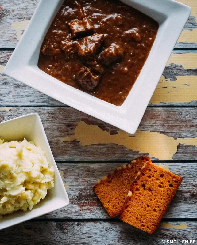 Serveer het stoofvlees met puree of verse frietjes, mayonaise en een witloofslaatje.