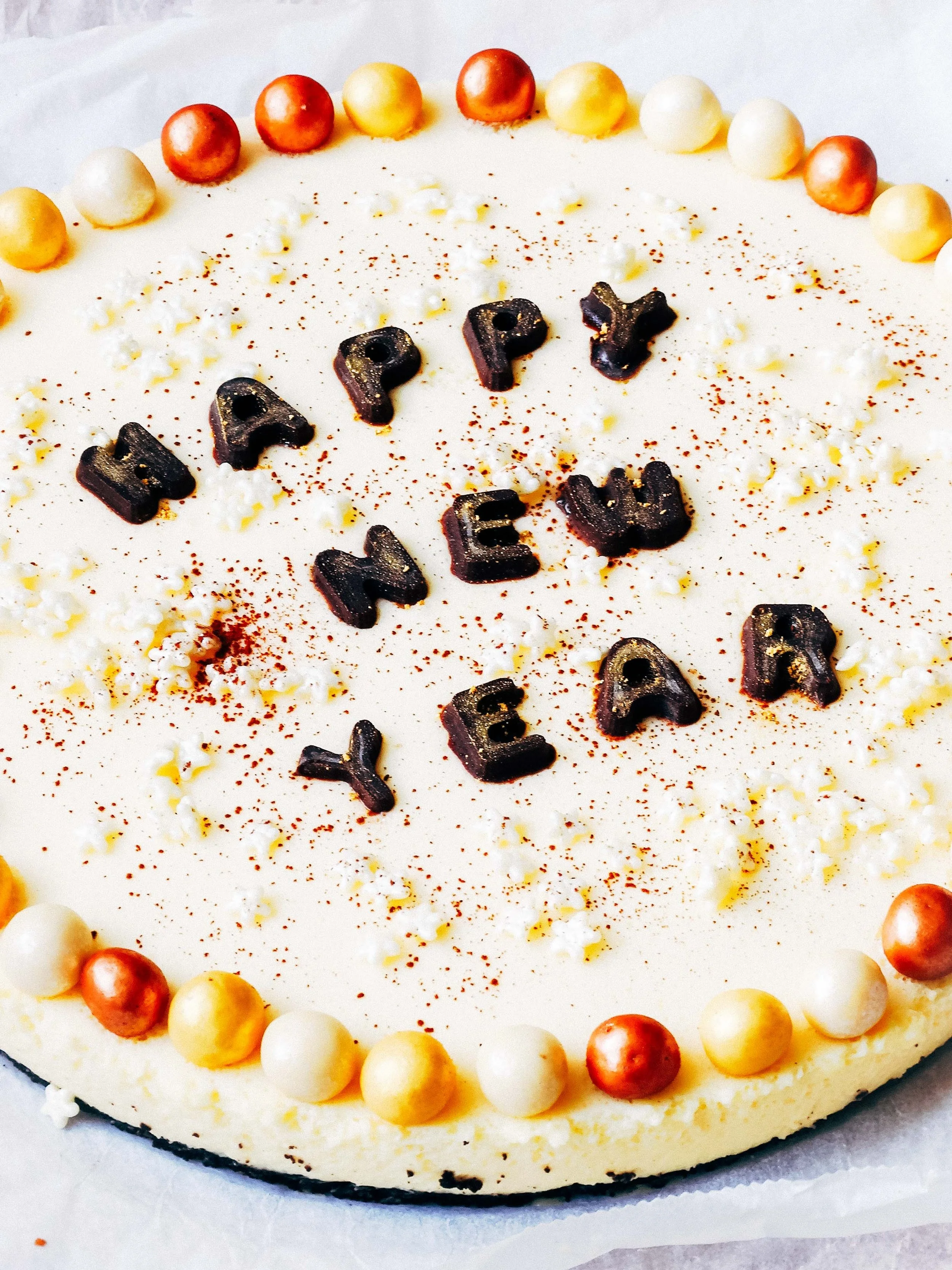 Giet dit op de koekjesbodem en laat enkele uren opstijven in de koelkast. Ontvorm de taart voorzichtig en garneer met rood fruit of chocolade voor het serveren.